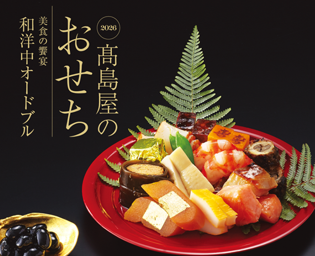 伝統の味を結集し作りあげた名店のおせちをはじめ、素材や製法にこだわり抜いた高島屋ならではの味わいを 今年も多彩にご用意いたしました。一年の幸せを願い、笑顔あふれるひとときに華やかな美味をお楽しみください。店頭でもWEBでも承っております。