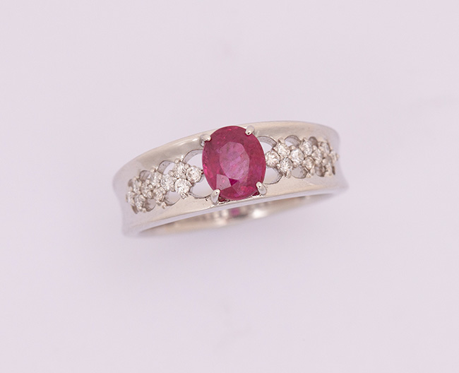 (ルビー:1.29ct 、ダイヤモンド:計0.18ct 鑑別書付)