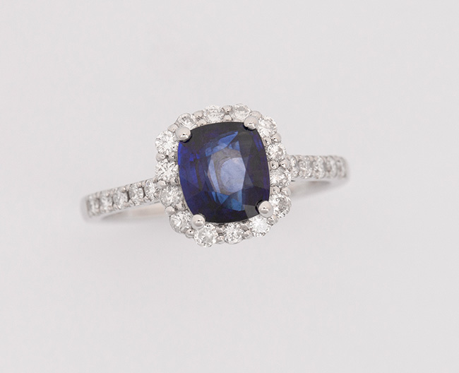 (サファイア:1.44ct、ダイヤモンド:計0.42ct、ロイヤルブルー鑑別書付)