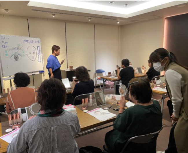 シニア世代の特有の悩みに対する実践的な解決策やメイクを通じて新しい自分を発見できるセルフメイク講座です。