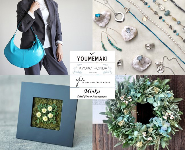 本革バッグ、ジュエリー、ドライフラワー、ペーパーフラワー四人の作り手が、それぞれの表現で「横浜への想い」を形にしました。