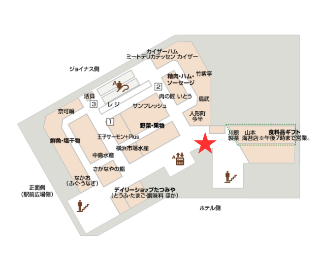 開店前にお並びいただくお客様は、地下1階 Foodies' Port1の下図 2 にお越しください。