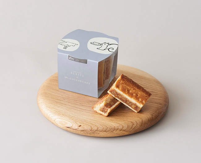 バニラ、トンカ豆、クルミッ子のキャラメルソースを組み合わせた優しい味わいのチーズケーキの底に、風味豊かなガレットブルトンヌやクルミ、生キャラメルを敷き詰めました。「クルミッ子」を「Mr. CHEESECAKE」で包んだような、優しくやわらかい味わいのコラボレーションチーズケーキです。