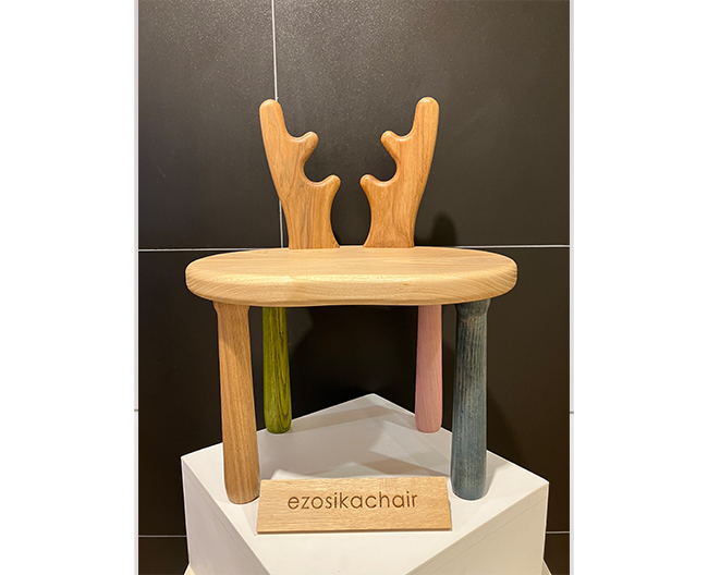 エゾシカの角をモチーフにしたキッズチェア。インテリアとしてもおすすめです。