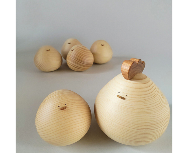 エゾマツの特徴を活かし、表情や形に癒されるころころ揺れる置物を製作しました。