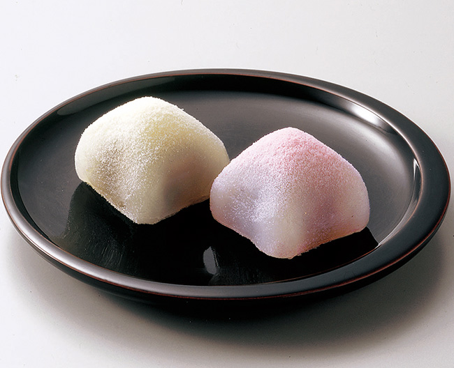 米飴を加えた贅沢な小豆のこしあんを求肥で包み、富士山に見立てた伝統の紅白祝菓子です。