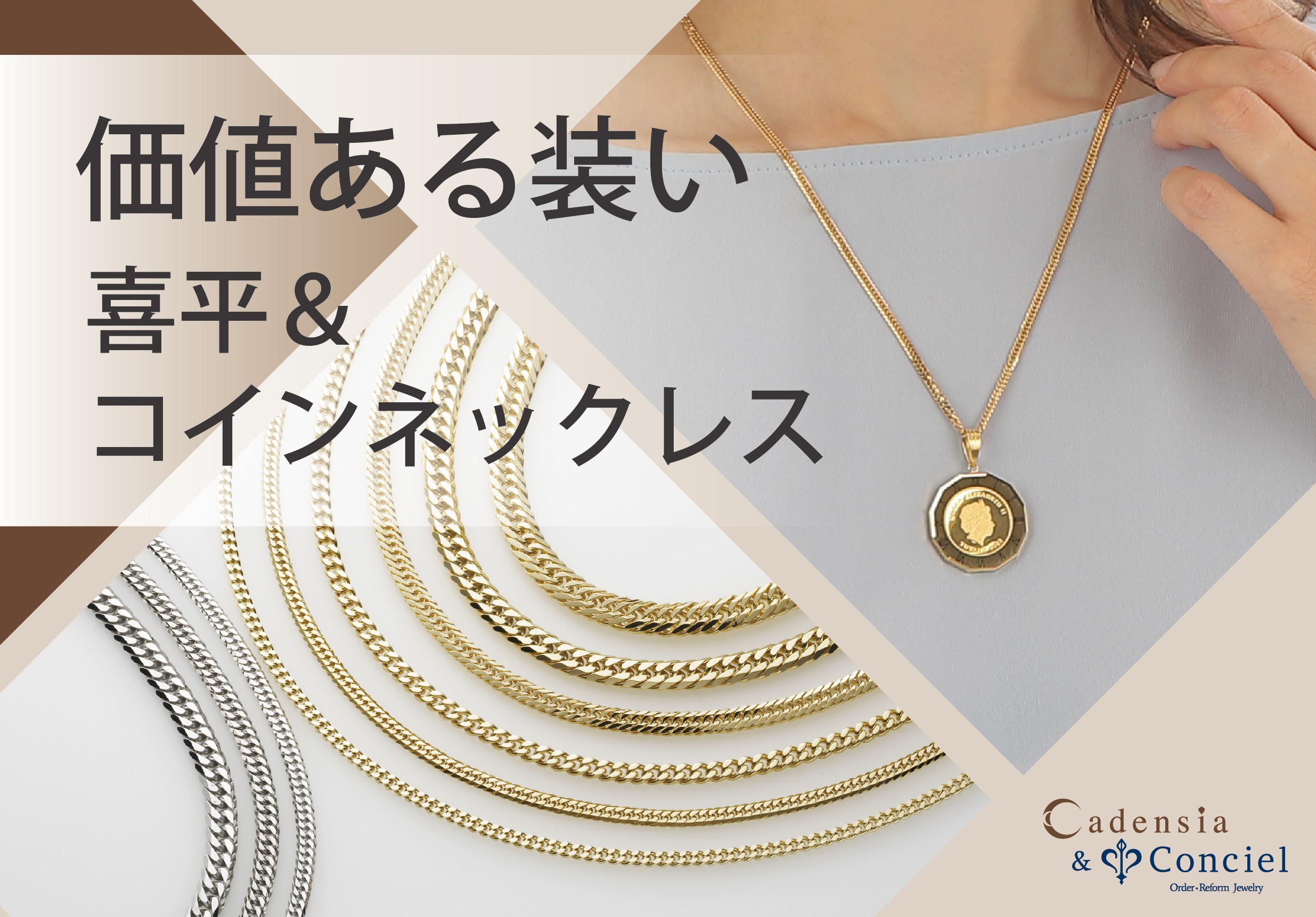 喜平ネックレスとコインを多数取り揃えております。一生ものとして身に着けてみてはいかがでしょうか。あわせて、京都老舗工房が作り出す純金糸ジュエリーも展開いたします。