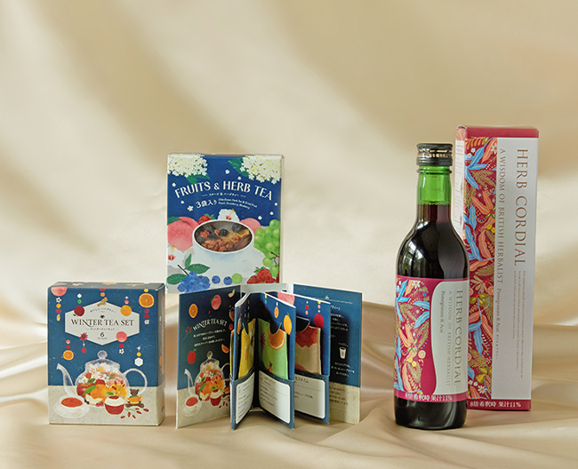 ハーブティーやコーディアルなど、冬のリラックスタイムを彩るアイテムも勢ぞろい。