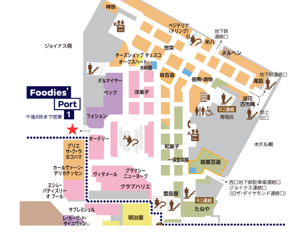 11月21日(金)に限り、開店前にお並びいただくお客様は、地下1階Foodies' Port1の下図 ★にお越しください。