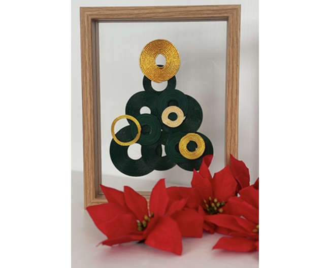 様々な水引の円を貼り合わせ、世界で一つのクリスマスパネルをお作りいただきます。