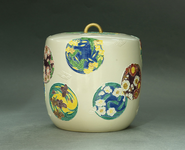 𠮷向焼は200余年の歴史があり、六代目より裏千家御出入方を許され茶陶を専門とし、当代八代𠮷向 十三軒先生が家伝を受け継いでいらっしゃいます。 喜寿記念となる今展はご子息の翔平先生の作品を加えた父子展となります。交趾や錦絵、三島手作品のほか、伊賀丸柱で制作される灰被の作品など、一堂に展観いたします。