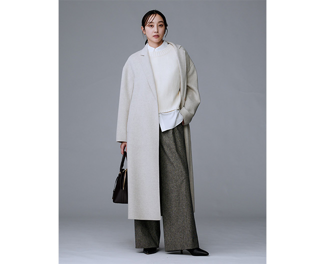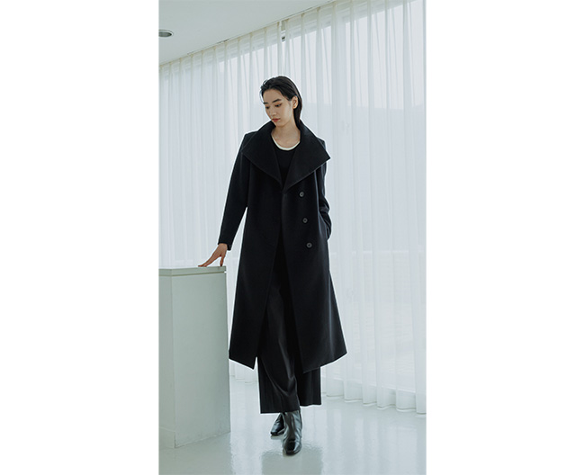 構築的なモードフォルムコート。スタイリングの主役になる季節感たっぷりの一枚。