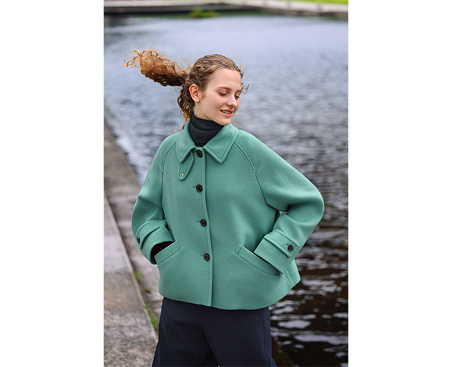 愛らしいAラインシルエットが魅力のWELBURYシリーズから、軽快な印象のショートレングスが登場。ケープのような柔らかいフォルムとゆとりのある袖がアイコニックなコートです。