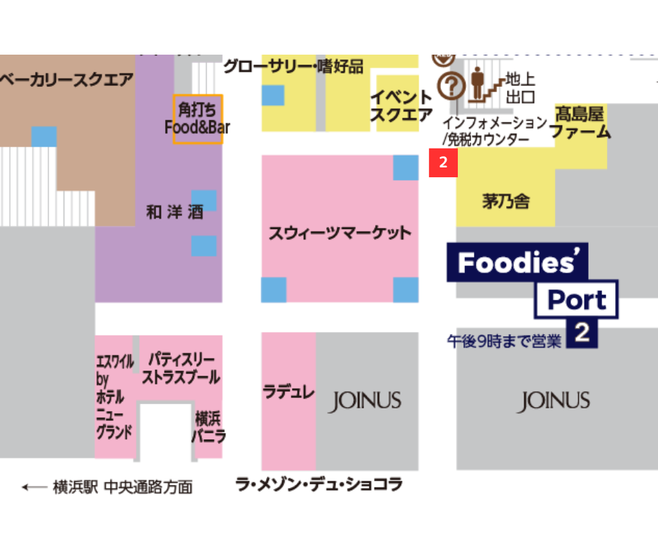 [鎌倉紅谷]のお品物をご希望で、開店前にお並びいただくお客様は、地下1階 Foodies' Port2の下図 2 (インフォメーション/免税カウンター横)にお越しいただきますよう、お願い申しあげます。