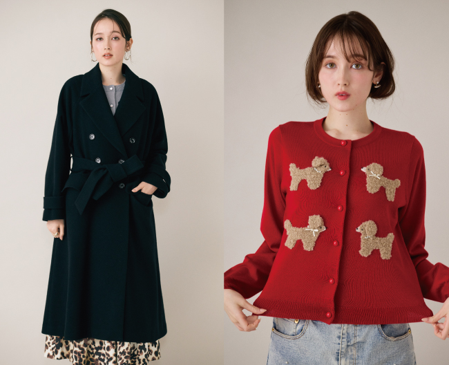 トイプードルのアップリケを施したニットカーディガン。もこもことしたプードルの毛並みが個性的な可愛さをプラス。