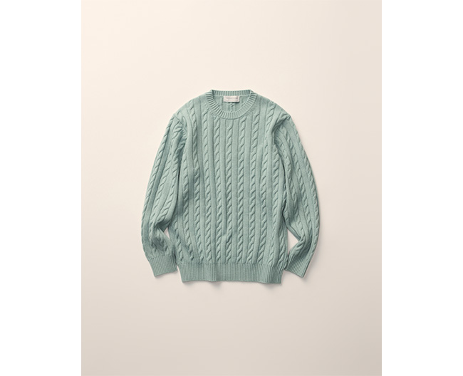 希少な素材のスーパーファインウールを使用したミドルゲージニット。厚みのある糸にもかかわらず、軽くて暖かい点が特徴です。上品な光沢感と柔らかい肌触りをお楽しみください。