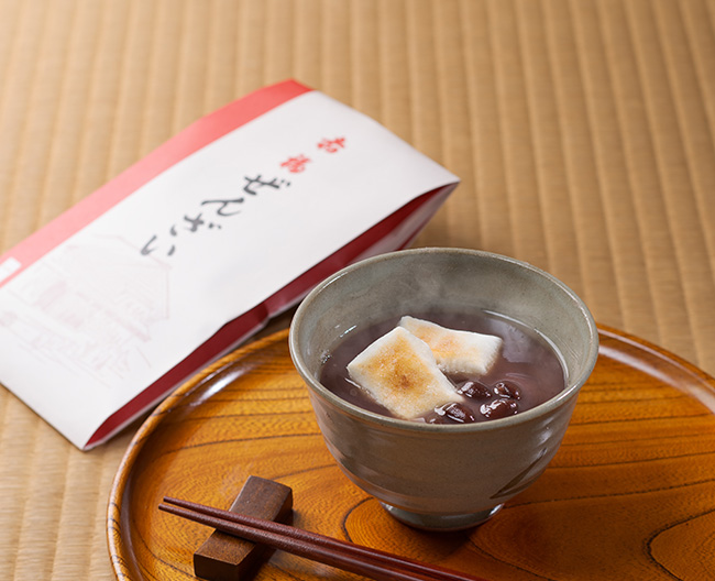 やわらかいお餅の上にこし餡をのせた餅菓子です。