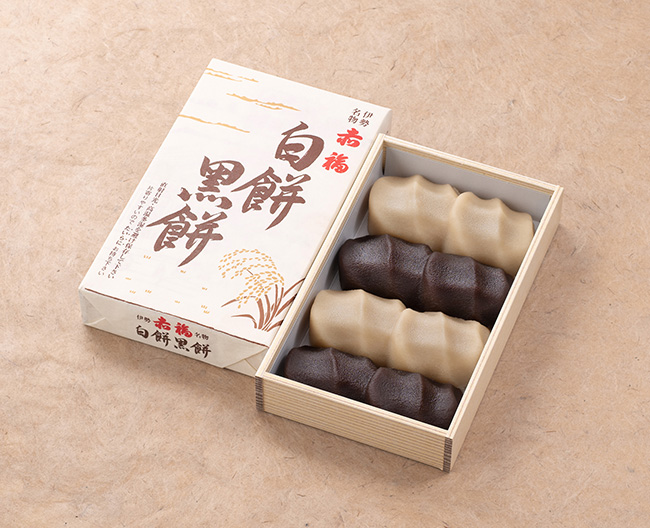 白餡は白小豆、黒餡は黒砂糖味。赤福餅とは、またちがった味わいをお楽しみいただけます。