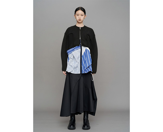 立体的なコードのパイピングがアクセントになったショートニットカーディガン。ゆったりとした身頃と太めの袖が[アンスリード]らしいバランスの取れたシルエットを演出。