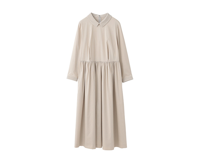 高級感のある別珍素材を襟とカフスにあしらった華やかなワンピース。