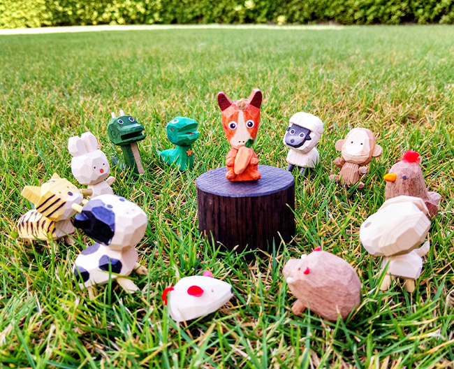 その年の主役をお立ち台にのせたり、家族の干支を前に並べたり、自由に並び替えできます。