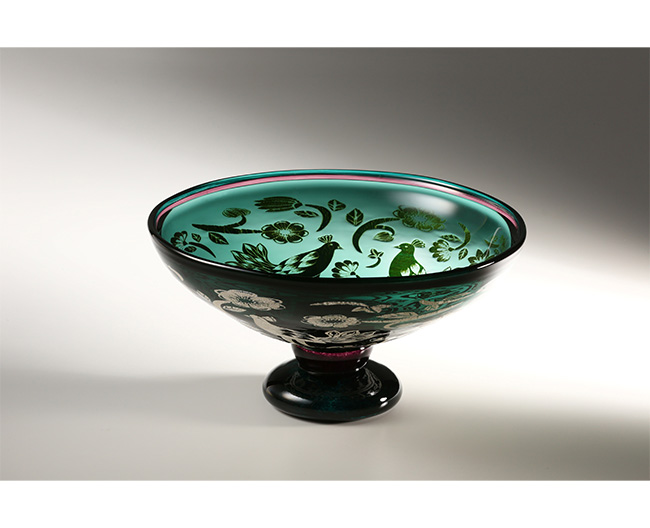長野県生まれ、神奈川県で育つ。東京ガラス工芸研究所を経て、アメリカ・ピルチャックグラススクールで学び、その後、ロチェスター工科大学ガラス科に留学。1996年、山梨県にガラス工房を設立されました。吹きガラス技法による柔らかなフォルムと優しい色彩が魅力で金箔・銀箔を用いた装飾が施された茶器や器が好評を博しています。ペルシャや更紗を思わせる文様を取り入れつつ、日本の暮らしに馴染む風合いのガラスをご高覧ください。