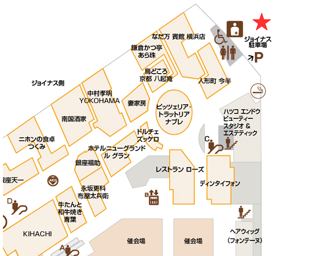 開店前にお並びいただく場合は8階 ジョイナス駐車場前(下図 )にお並びください。