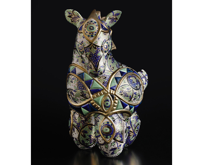 植葉香澄先生は1978年京都市に生まれ、京都市立芸術大学工芸科で陶芸を学びました。古典的な図柄を現代風にアレンジした華やかな文様を施した陶芸作品で人気を集める気鋭の作家です。異なるルーツの文様と色彩、フォルムが一体となった茶碗、蓋物、香炉などの新作を一堂に展観します。