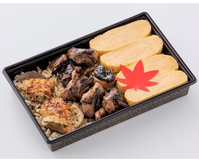 香ばしい鶏の炙り、地元佐賀県産の卵でふっくらと焼き上げただし巻き、具だくさんの鶏めしをあわせた心温まる鶏づくしのお弁当です。