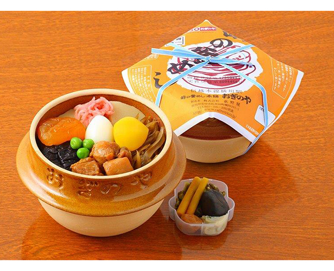 発売開始から60年以上、多くのお客様に愛され続けている[荻野屋]を代表する駅弁です。容器は、昔ながらの陶器と環境に優しい非木材のパルプモールドの2種をご用意いたします。