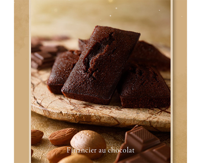 繊細な温度管理のもとで仕上げられたチョコレートが、フィナンシェの味わいをより深く引き立て、ひと口ごとにチョコレートの存在感が際立ちます。