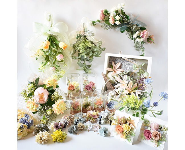 アーティフィシャルフラワーやプリザーブドフラワーのアレンジメントを中心に、暮らしに寄り添う落ち着いた色合いの花の彩りを大切にお届けしています。大切な方への贈り物としてお選びいただけるアレンジメントや、大人の装いにそっと寄り添う、甘さを控えた花のアクセサリーもご用意しております。