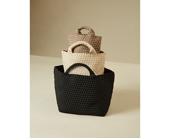 [NAGHEDI(ナゲディ)]は、ニューヨーク発のバッグブランド。創業者Sara Naghedi氏が「シーズンを超えて使えるクラシックバッグ」を目指して2016年にスタートしました。天候や季節を問わず使える弾力ある高密度フォーム素材を手で編み込む独自の技術により、軽量で耐久性が高く、防水性にも優れたメッシュバッグをご紹介いたします。汚れに強く、お手入れもしやすいため、通勤・旅行・デイリーユースまで幅広いシーンで活躍します。