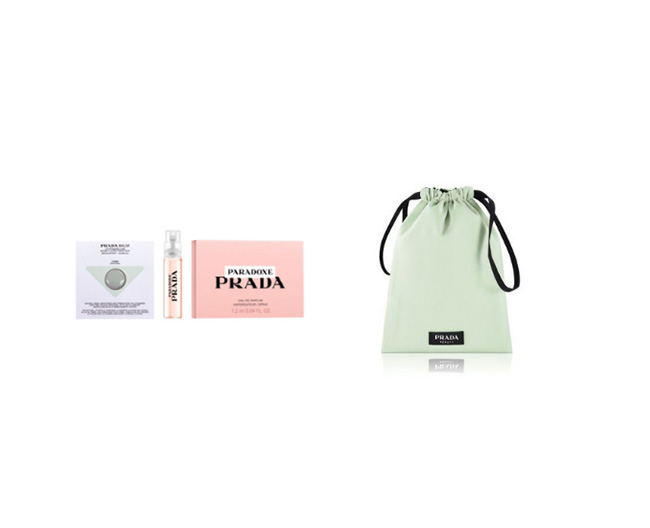 ①[プラダ ビューティ]のメンバーズ登録&LINE連携頂いたお客様に、「リップ バーム オプティマイジング ケア サンプルカード」と「プラダビューティパラドックス(1.2mL)」を進呈いたします。