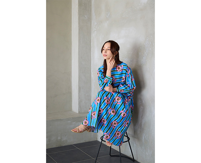 繊細さとダイナミック感が共存する存在感あるプリントはタウンカジュアルやリゾートスタイルに映えるスタイリングです。