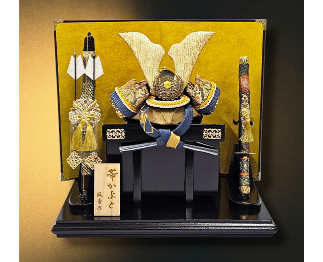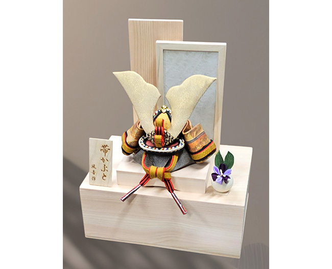 帯かぶと 檜収納箱タイプ(素材:正絹、W24×D17×H33㎝ (飾り付け時)) 82,500円
