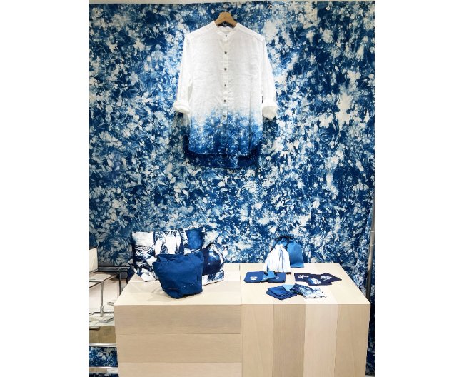 自然界から採れる原料のみを用いて染液を作る、江戸時代の製法「灰汁醗酵建て」にこだわり、現代的なデザインに藍染めを施した「トラディショナルモダン」の装いをお楽しみください。