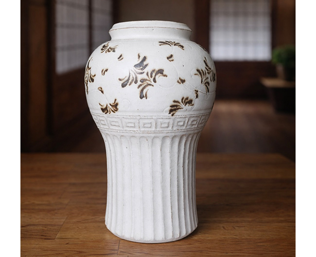 唐草泥白花生(素材:陶器、約径16×高さ24cm) 22,000円