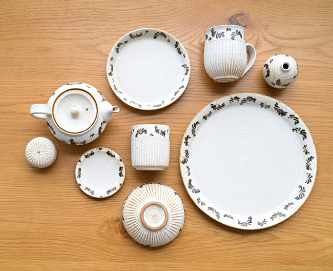 神奈川県大磯町在住、京焼で学んだろくろの技術に、化粧や呉須による装飾を取り入れて制作。