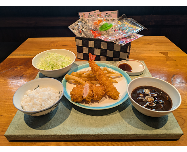 お子様が大好きな海老フライ・やわらかヒレかつ・ポテトフライがのったお子様膳です。