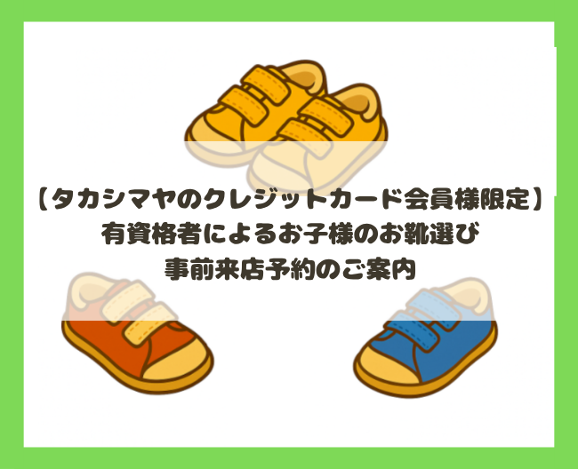 【タカシマヤのクレジットカード会員様限定】有資格者によるお子様のお靴選び 事前来店予約のご案内